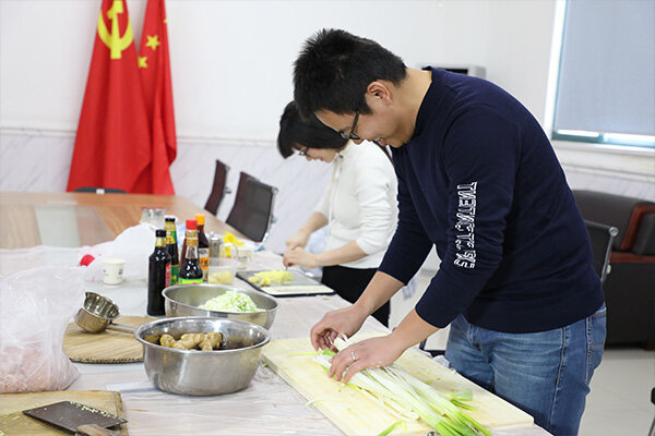 冬至宴熱鬧有序的進(jìn)行著,大家分工明確,以飽滿的熱情投入這場活動中,先開始行動的就是我們的采買小隊,精心挑選食材,交于我們的帥哥-調(diào)餡擔(dān)當(dāng)。