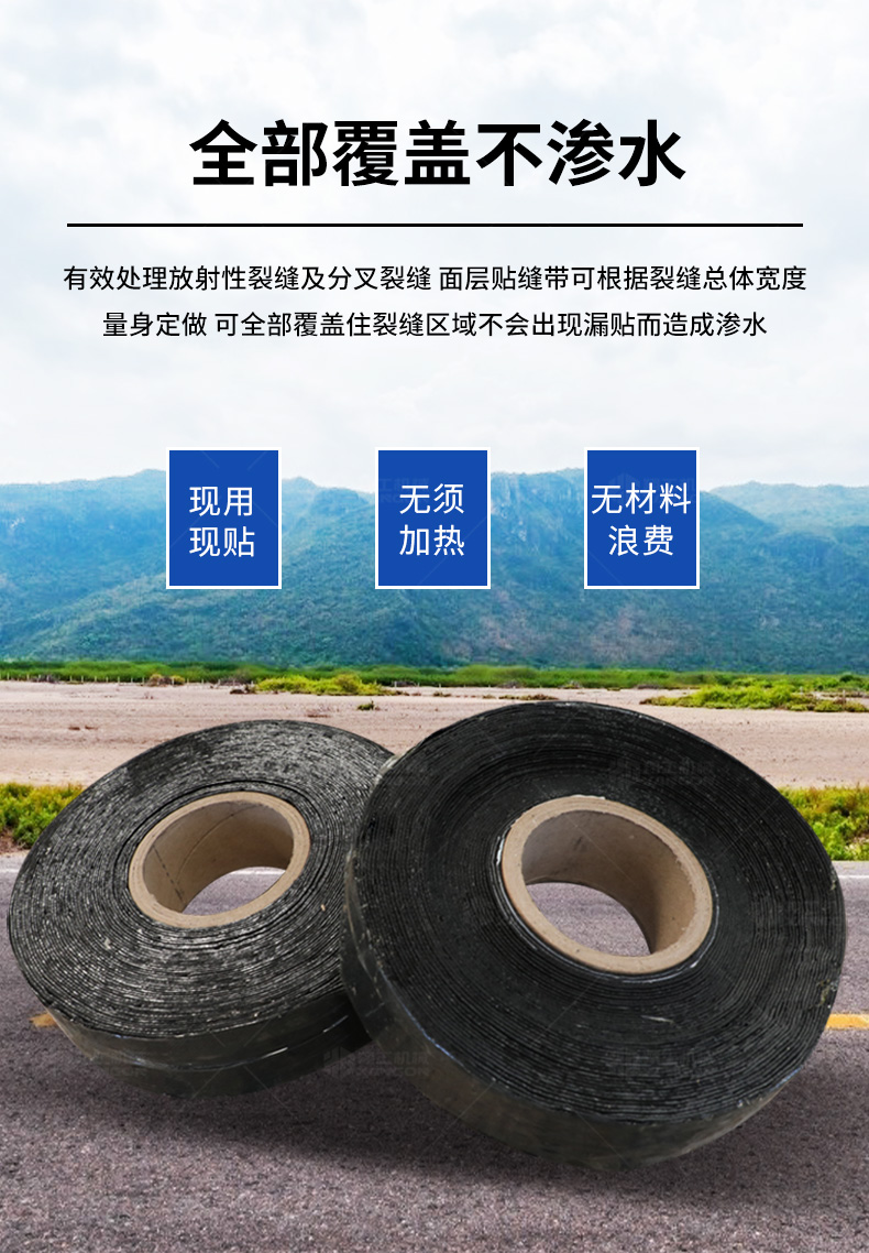 適用于水泥、鋼板、瀝青路面、小坑槽、水井蓋的各種裂縫包括反射裂縫的處治,亦可用于封層罩面等施工前的裂縫處治??梢宰柚沽芽p松散、滲水、崩邊、崩縫、坑槽。