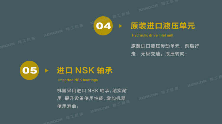 ·傳動機(jī)構(gòu)采用名優(yōu)液壓傳動系統(tǒng),無級變速,換向方便,實用壽命長;