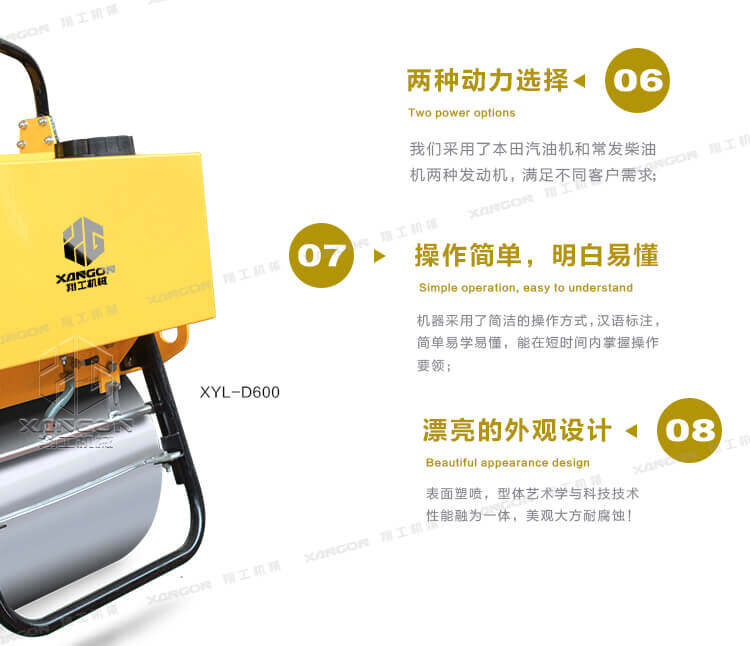 手扶單輪(汽油)壓路機(jī)進(jìn)口液壓系統(tǒng)手扶壓路機(jī)XYL-D600主要用于溝渠基礎(chǔ),道路,體育場地的壓實整平,也可用于壓實瀝青表面的作業(yè)。