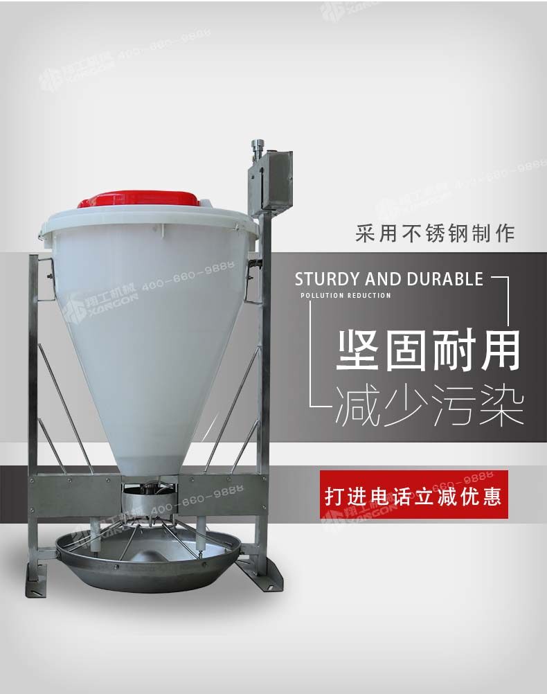 智能豬料槽采用不銹鋼原料和大容積的滾塑料筒組成,鈍化實(shí)際,美觀、耐用、實(shí)用是它的主要特點(diǎn)。內(nèi)部控制的元器件采用進(jìn)口數(shù)字化非接觸性電子元器件,壽命比普通的高10倍以上, 機(jī)械壽命進(jìn)一步提升、減少維護(hù)的煩惱。