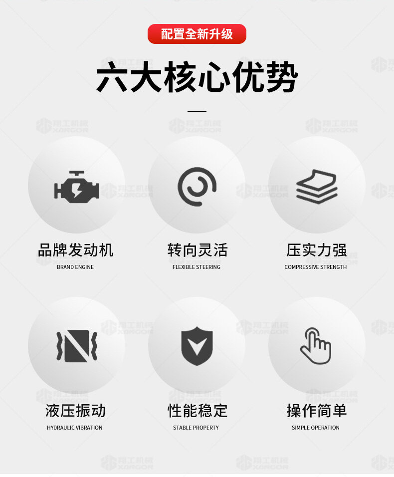 XYL-860座駕壓路機(jī)適用于各種溝槽沙土回填壓實(shí)、高層建筑地下室土方壓實(shí)、小區(qū)道路基礎(chǔ)壓實(shí)、各種草坪壓實(shí)、修補(bǔ)及各種小型工程的使用,解決了大型壓路機(jī)無(wú)法工作區(qū)域的壓實(shí)作業(yè)。