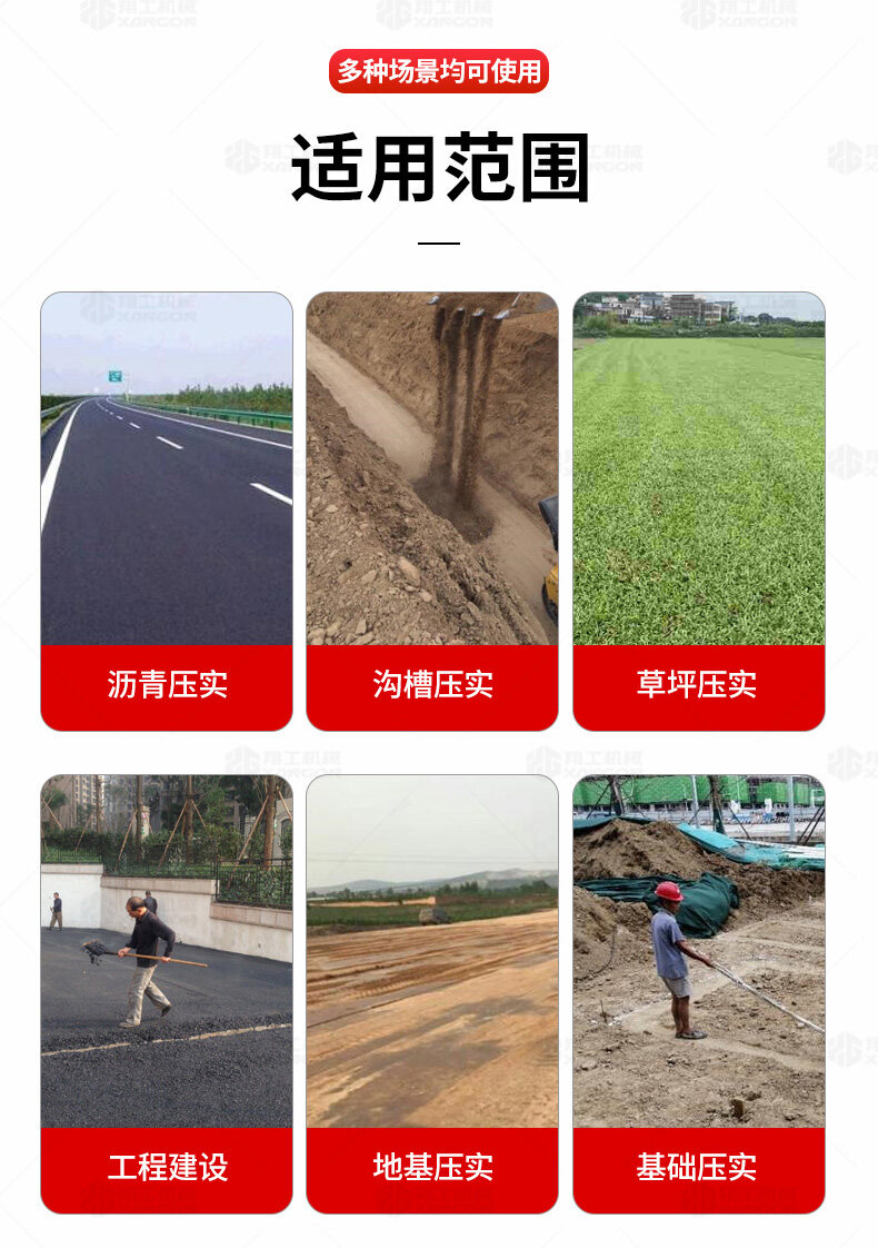 4、其余施工區(qū)域狹窄的施工場(chǎng)合,能靈活地完成壓實(shí)工作。