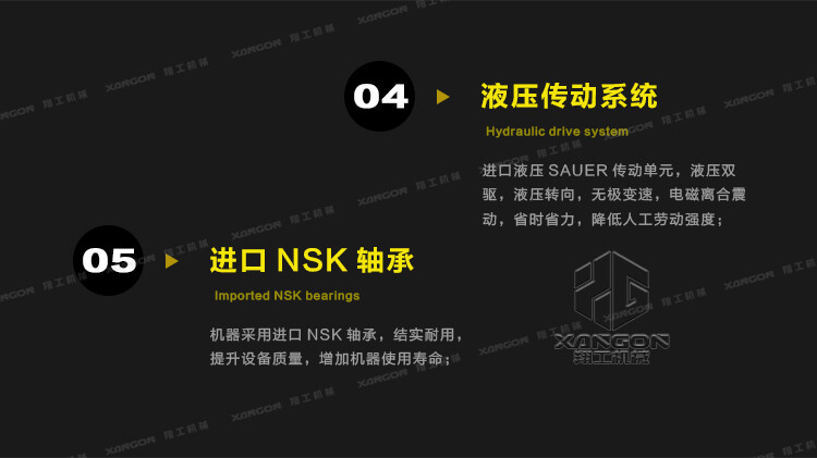 采用國際SAUER液壓傳動(dòng)單元,無級(jí)變速,液壓轉(zhuǎn)向,換向方便;