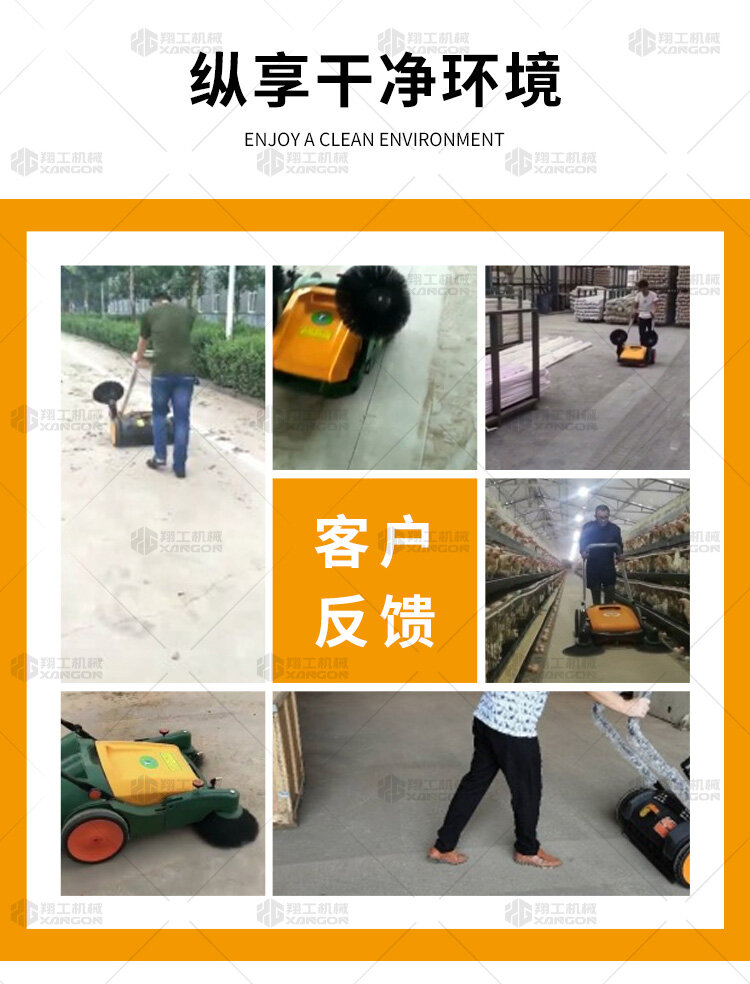 X920型全自動(dòng)手推式掃地機(jī)能清潔房屋周邊范圍:包括小路,公路,車道和院子,能比普通的掃把和簸箕節(jié)省5倍的時(shí)間,清掃時(shí)垃圾被迅速的收集到塵箱,簡單、快速、干凈。