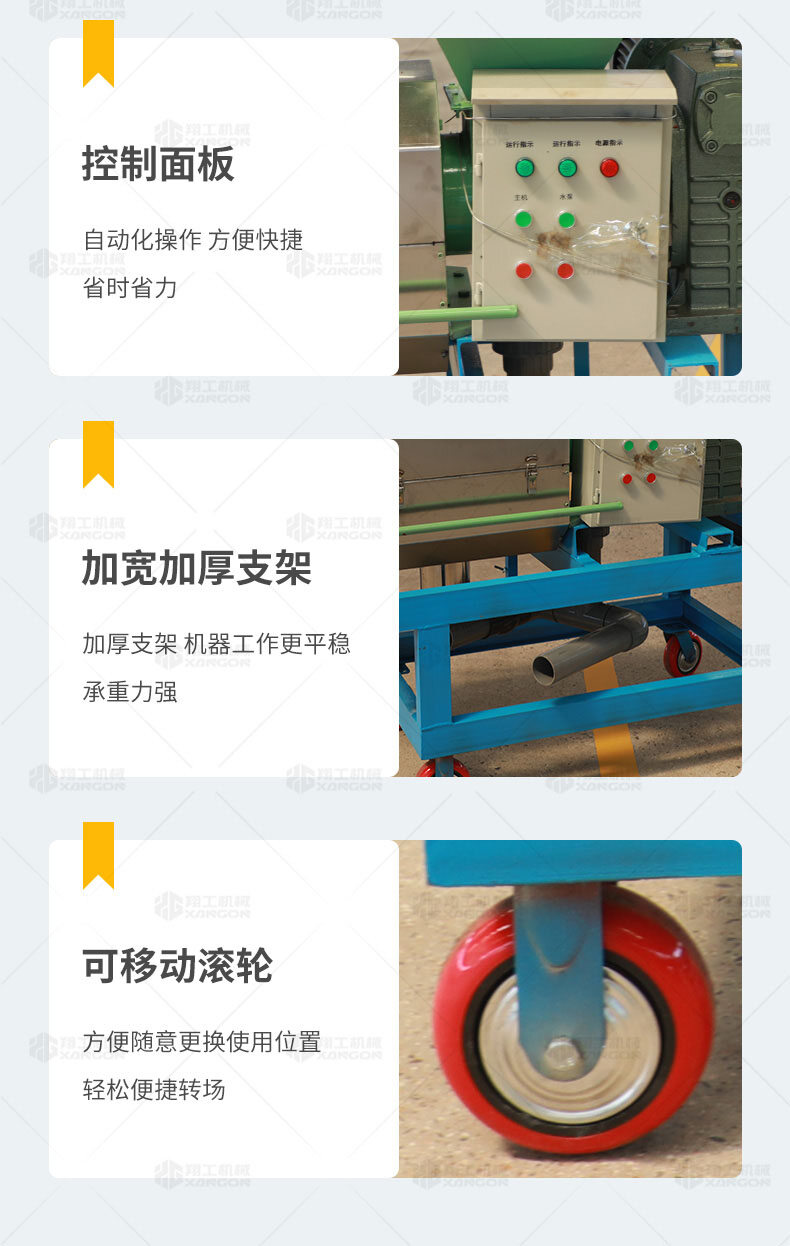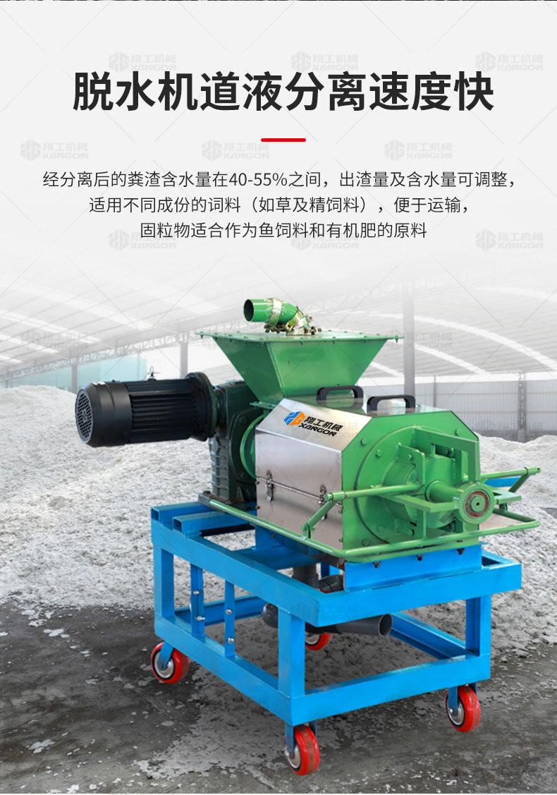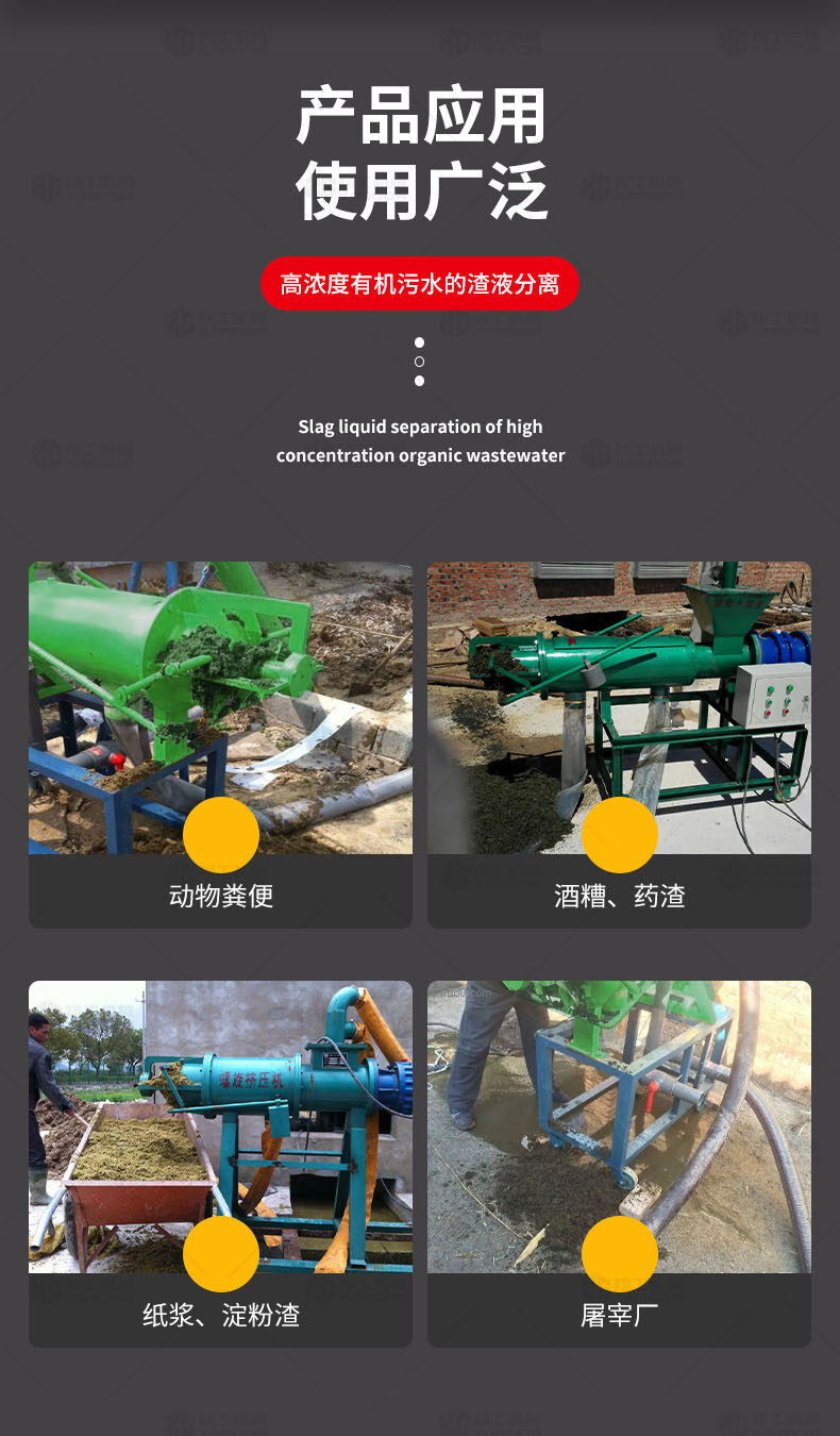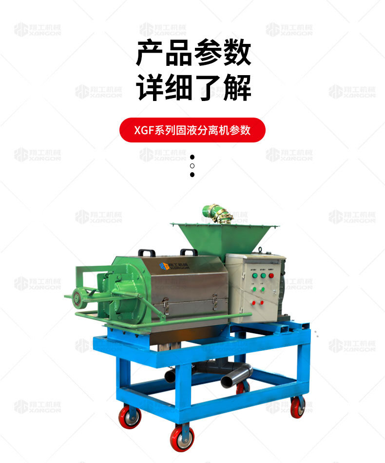 XGF系列固液分離機(jī)可廣泛做為雞、牛,馬及各類(lèi)集約化養(yǎng)殖場(chǎng)對(duì)紙漿、動(dòng)物糞便、酒糟、藥渣、淀粉渣、醬渣、屠宰廠等高濃度有機(jī)污水的渣液分離。