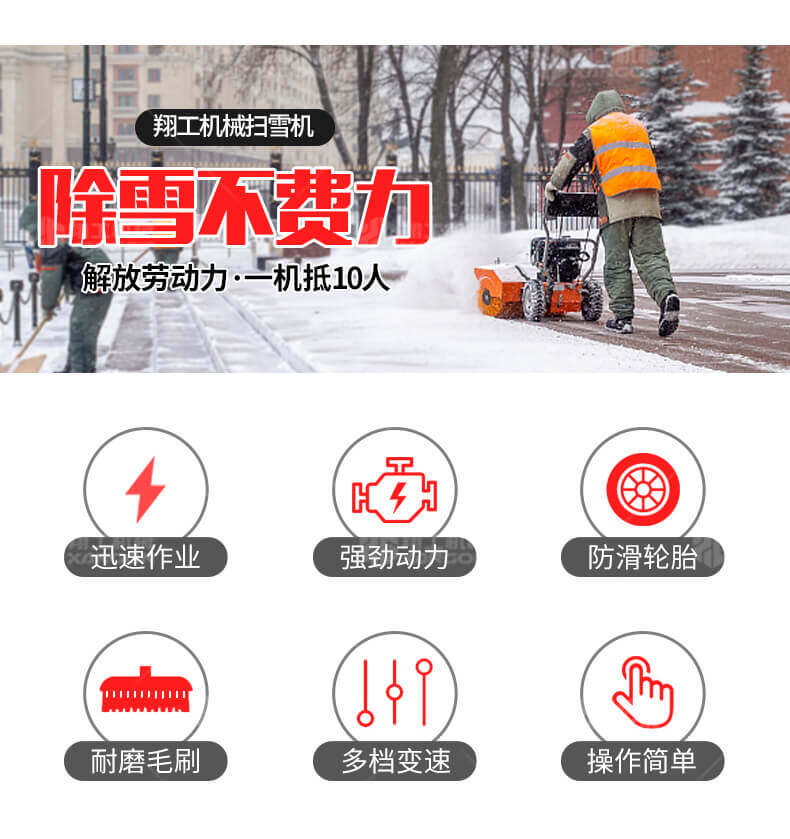 1、節(jié)省勞動(dòng)力,一臺(tái)機(jī)器能完成至少20個(gè)人的工作量 2、節(jié)省管理成本,降低環(huán)衛(wèi)工人的交通事故率 3、清掃人行道等路面非常干凈,不留殘雪