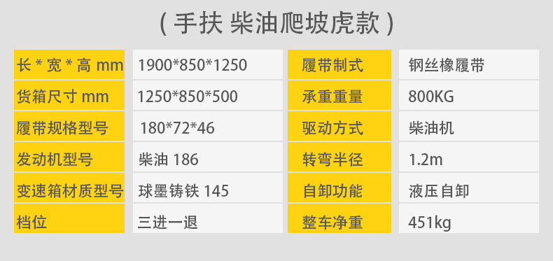手扶式履帶運(yùn)輸車它是采用手扶式的方式駕駛,自動靈活,安全可靠,可以在泥濘、結(jié)冰道路、沙漠、沼澤以及土質(zhì)松軟或氣候條件不太好的接近角和離地角行駛。它的性能穩(wěn)定,功能強(qiáng)勁,使用能力進(jìn)一步提高。運(yùn)載能力強(qiáng),爬坡能力大,操作簡單,維修保養(yǎng)容易。