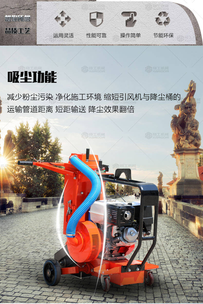 用于對(duì)主要用于瀝青、水泥路面裂縫病害處置時(shí)的開(kāi)槽拓寬和清理雜物,為道路灌縫做前期準(zhǔn)備,優(yōu)化灌縫材料與縫槽的接觸層面,加強(qiáng)灌縫材料與縫槽側(cè)壁粘結(jié)的緊密性。產(chǎn)品具有轉(zhuǎn)向靈活、操作方便、工作效率高、跟蹤效果好等特點(diǎn)。