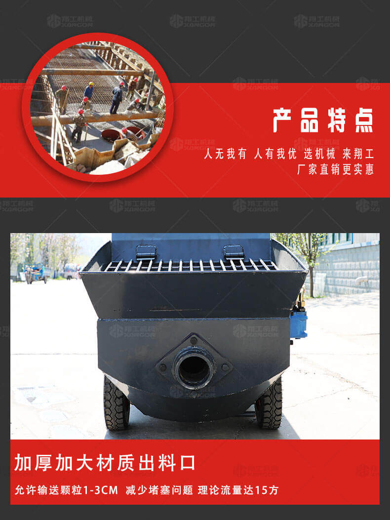 這款30KW澆筑泵優(yōu)勢(shì)多多,性能可靠,設(shè)備各個(gè)結(jié)構(gòu)制造科學(xué),電機(jī)功率大、性能穩(wěn)定、施工效率高等優(yōu)勢(shì),使用電動(dòng)澆筑泵大大提高了施工效率,降低勞動(dòng)強(qiáng)度,節(jié)約人工,被廣泛應(yīng)用。是工程施工的好幫手。