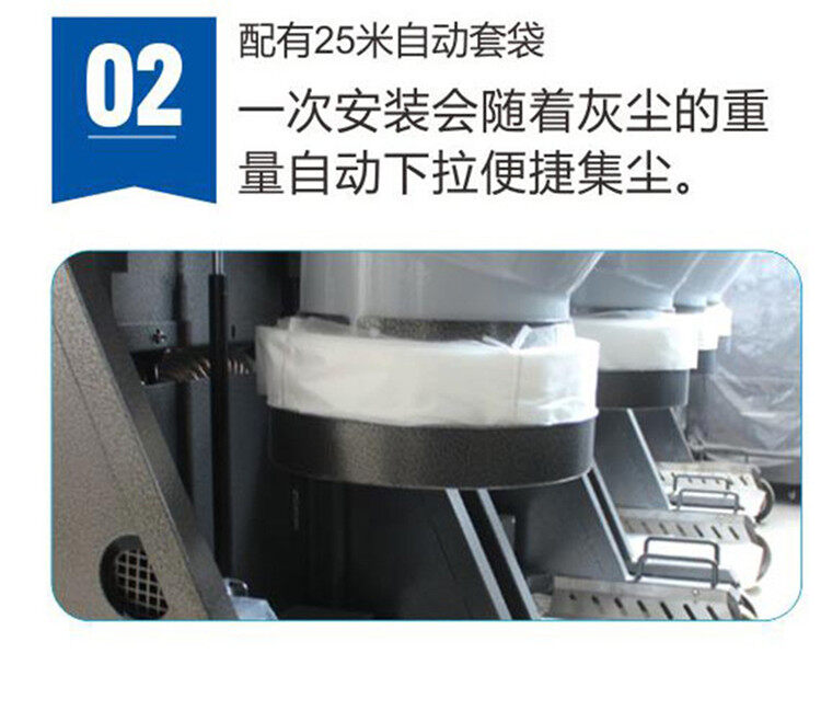 2.配有25米自動(dòng)套袋,一次安裝會(huì)隨著灰塵的重量自動(dòng)下拉,非常便捷,而且節(jié)省清潔時(shí)間。