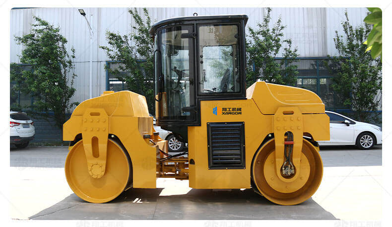XGC6型振動壓路機(jī)(SAC6CD型振蕩壓路機(jī))是一種串聯(lián)式的雙鋼輪型振動(蕩)壓實機(jī)械;該機(jī)主要由鉸接式車架、振動(蕩)輪、轉(zhuǎn)向輪,動力裝置、液壓振動、液壓轉(zhuǎn)向、操縱機(jī)構(gòu)、電動灑水和電氣系統(tǒng)等主要部分組成。