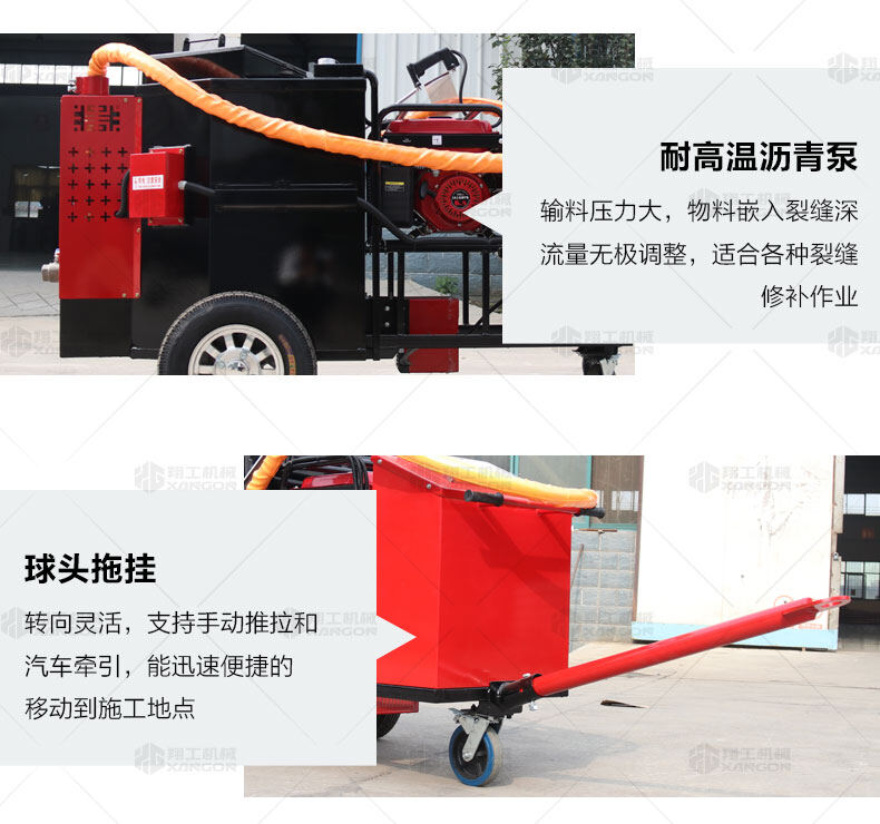 瀝青灌縫機(jī)主要使用原料為瀝青灌縫膠,主要用于瀝青路面不規(guī)則裂縫的處理,恢復(fù)路面平整。