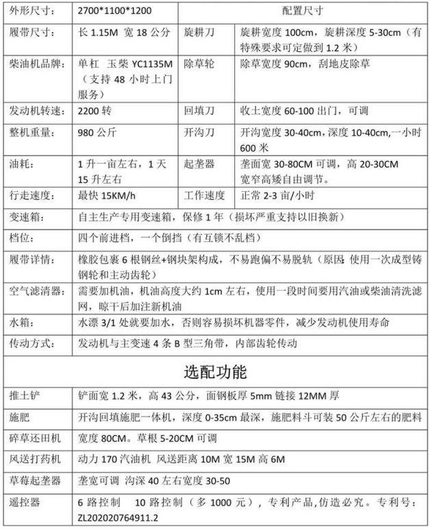 標(biāo)配:旋耕、除草、開溝、起壟、回填。