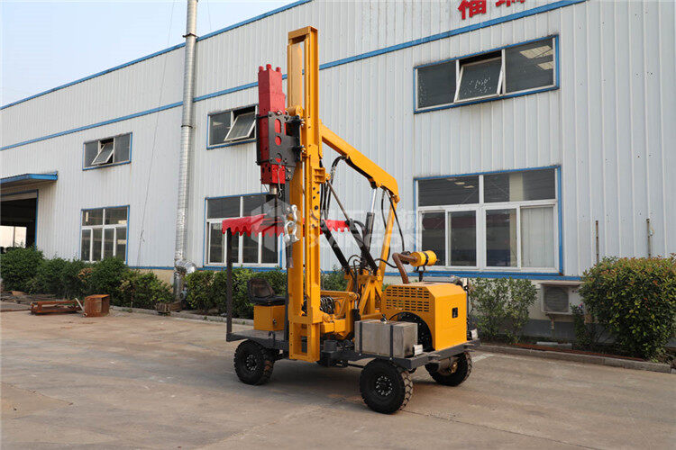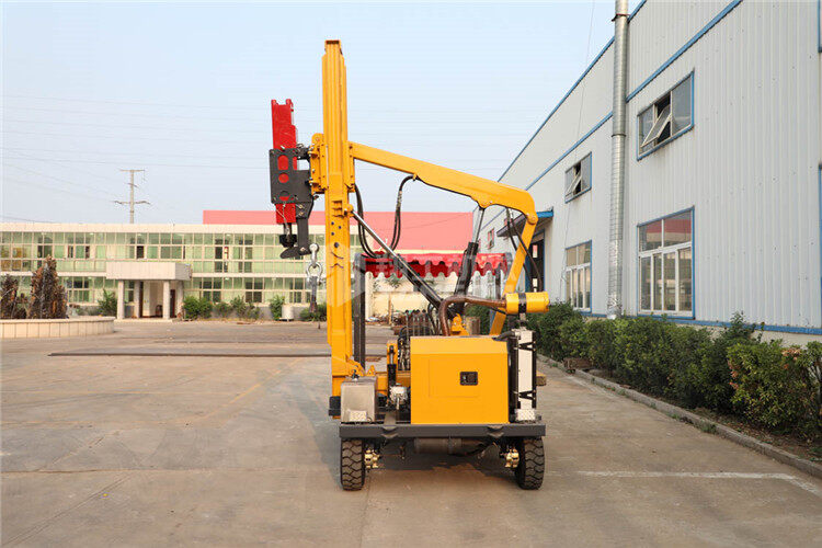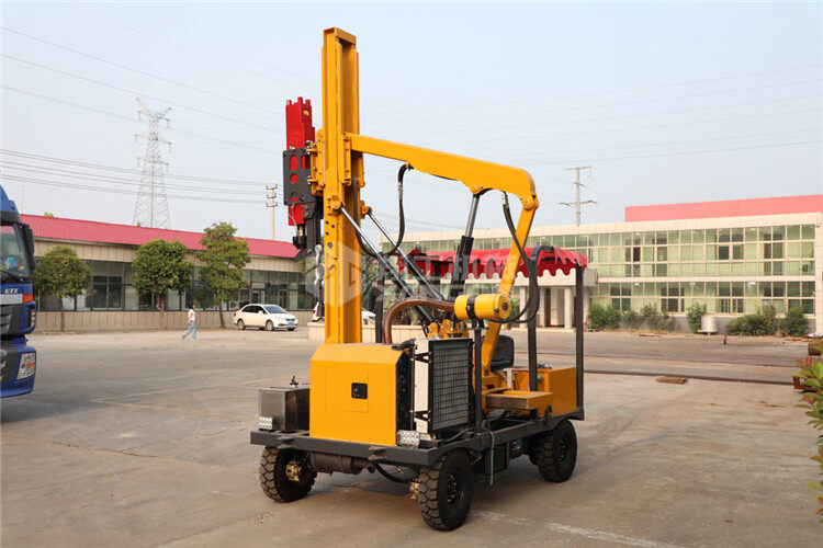 小四輪打樁機是護欄打拔鉆一體機的同類產(chǎn)品,也是用于公路波形護欄的安裝。該機采用柴油動力,全液壓機械傳動,具有行駛輕便、打樁精度高、經(jīng)久耐用、節(jié)能環(huán)保等特點,特別適用于公路護欄安裝、維修和搶修的野外工程施工。