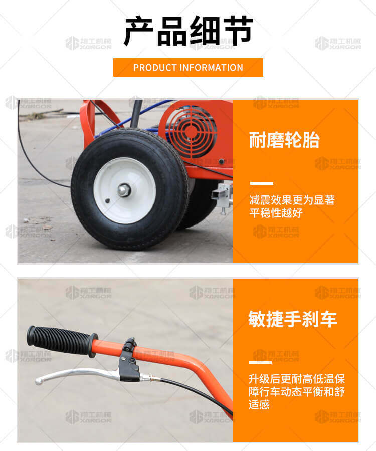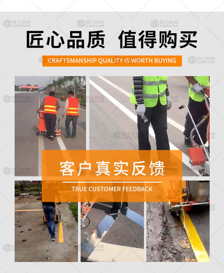 小型手推式道路劃線機(jī)是一種在道路、停車場(chǎng)、廣場(chǎng)和跑道等平整地面上劃出不同約束、指引和警示等規(guī)則限制標(biāo)志的路面施工機(jī)械。最常見(jiàn)的就是在馬路上劃斑馬線,在路上劃車庫(kù)線、停車線等等應(yīng)用于小型工程、短途施工,活動(dòng)方便,靈活操作。 道路劃線機(jī)有冷噴式和熱熔式兩大類,冷噴式操作方便,施工快捷,可連續(xù)快速施工,越來(lái)越受到用戶青睞。熱熔式要帶上熱熔高溫爐等諸多輔助設(shè)施,施工時(shí)要間歇地從熱熔高溫爐取料,施工速度很慢,操作便捷性不夠且效率低,但一次成膜較厚。目前,比較常用的是冷噴手推式劃線機(jī),它可運(yùn)用于一般公路中小工程,運(yùn)用于廠區(qū)或地下室小工程劃線施工。