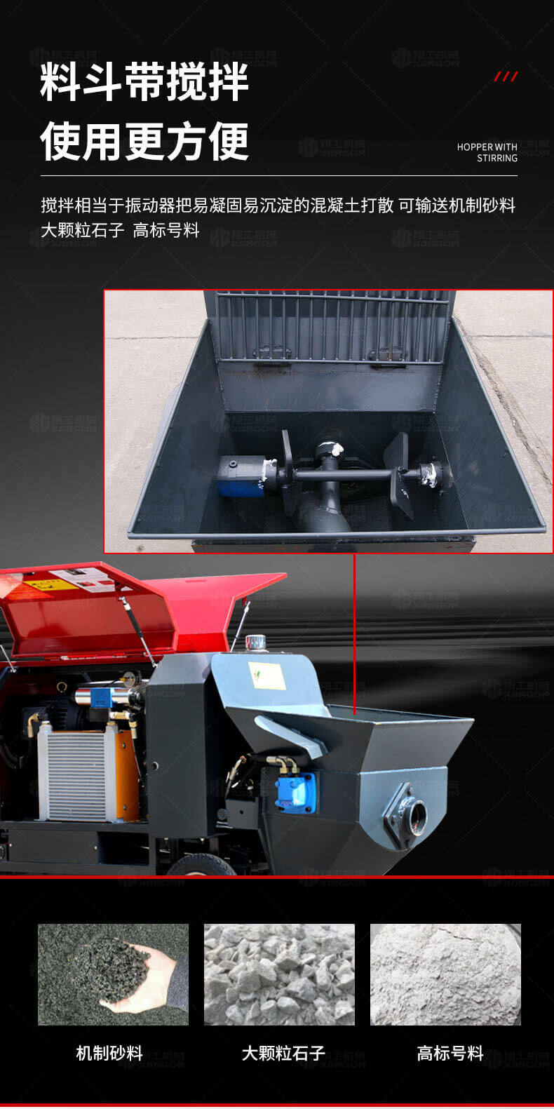 這款7.5KW型澆筑泵帶有自動(dòng)攪拌功能,性能可靠,設(shè)備各個(gè)結(jié)構(gòu)制造科學(xué),電機(jī)功率大、性能穩(wěn)定、施工效率高等優(yōu)勢,使用電動(dòng)澆筑泵大大提高了施工效率,降低勞動(dòng)強(qiáng)度,節(jié)約人工,被廣泛應(yīng)用。是工程施工的好幫手。