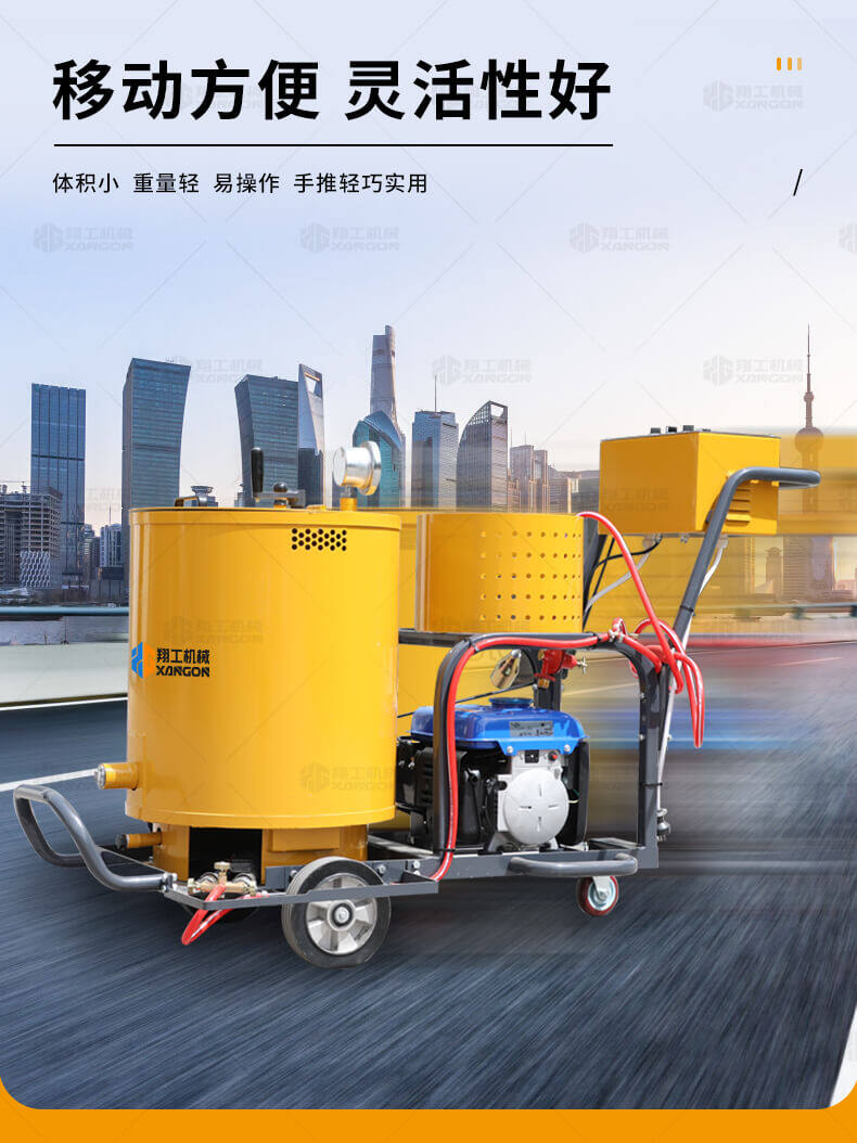 60升瀝青灌縫機(jī)用于瀝青或水泥路面裂縫瀝青灌縫。 60升瀝青灌縫機(jī)采用名優(yōu)發(fā)電機(jī),性能穩(wěn)定;液化氣加熱,方便靈活;超大瀝青罐;出料管路全程加熱,避免堵塞。