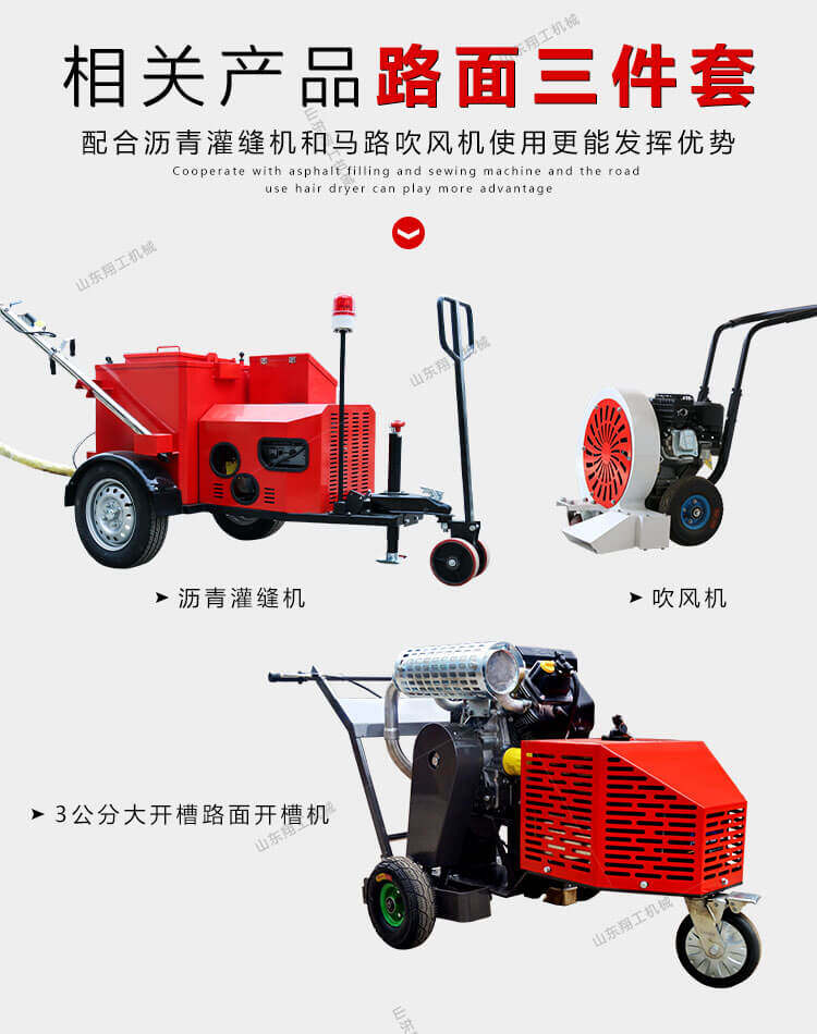 路面開槽機適用于瀝青路面灌縫修補前的裂縫打?qū)?。該設(shè)備具有使用方便,擴縫速度快,刀片使用壽命長,擴縫寬度可調(diào)等優(yōu)點。