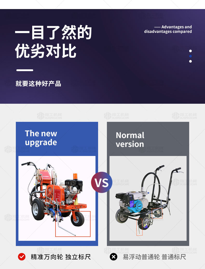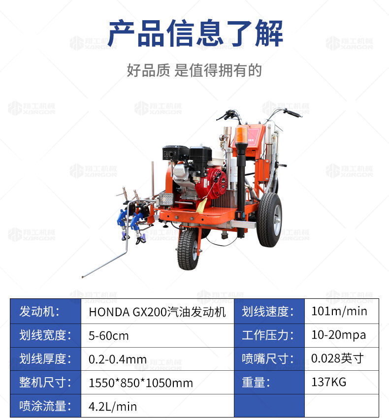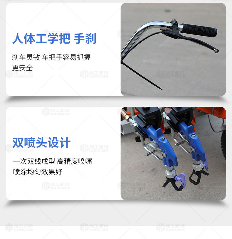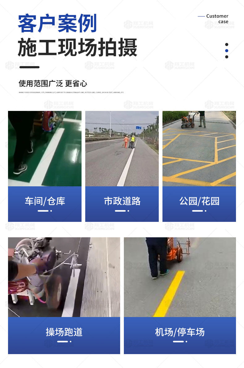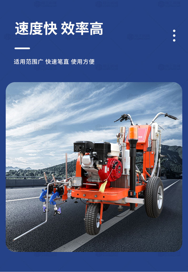 主要用于公路、市區(qū)、停車場(chǎng)、機(jī)場(chǎng)等涂劃直線、虛線、曲線、文字、箭頭等。具有劃線效果好、速度快、效率高、適用范圍廣、使用方便等優(yōu)點(diǎn)。