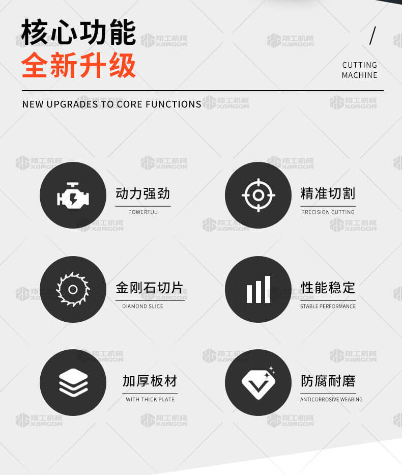 用于公路、市政、建筑、煤氣、通信部門修補(bǔ)公路或開挖溝槽時(shí)進(jìn)行路面切割。相對(duì)于電動(dòng)或柴油動(dòng)力的路面切割機(jī),操作輕巧省力,運(yùn)輸方便,工作效率高。