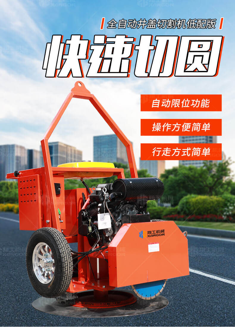 全自動(dòng)井蓋切割機(jī),專門用于對(duì)城市道路中機(jī)動(dòng)車道等井蓋周圍的水泥、混凝土、瀝青、特殊路面進(jìn)行圓形切割。為清除井蓋周圍的破損路面提供分割區(qū)域,修復(fù)后的地面美觀,延長了路面的使用壽命。