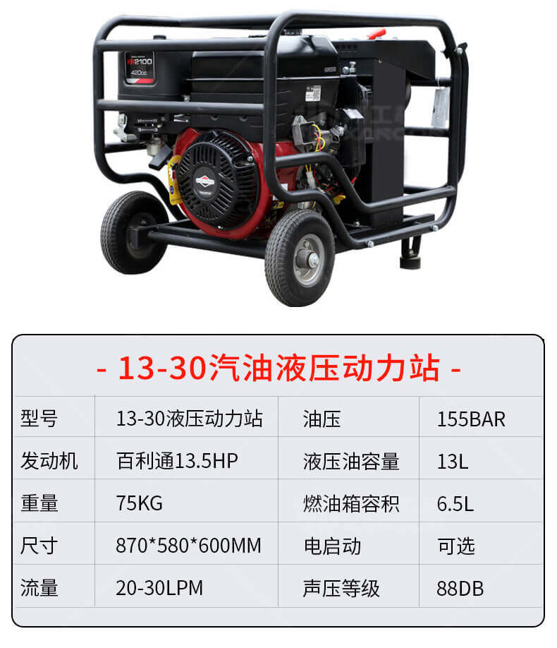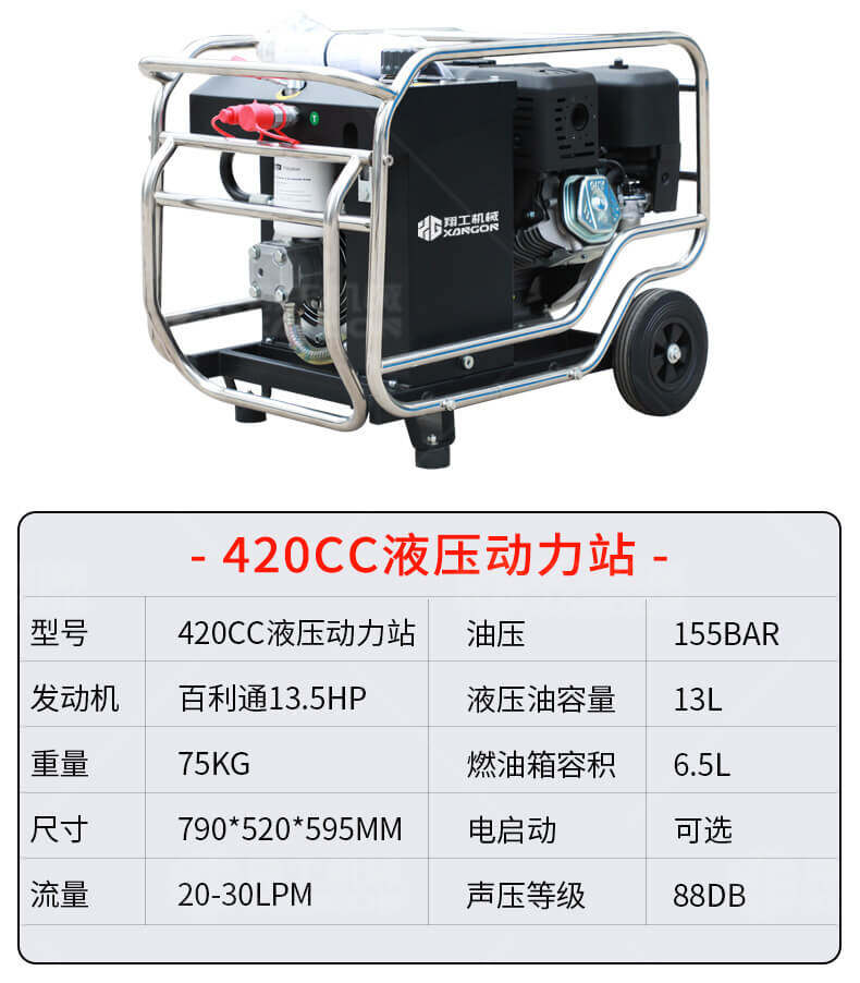 液壓動(dòng)力站采用先進(jìn)的技術(shù),可提供汽油或柴油風(fēng)冷式內(nèi)燃發(fā)動(dòng)機(jī),燃燒效率高,重量輕,堅(jiān)固耐用,使用壽命長(zhǎng),且不用擔(dān)心發(fā)動(dòng)機(jī)過載。