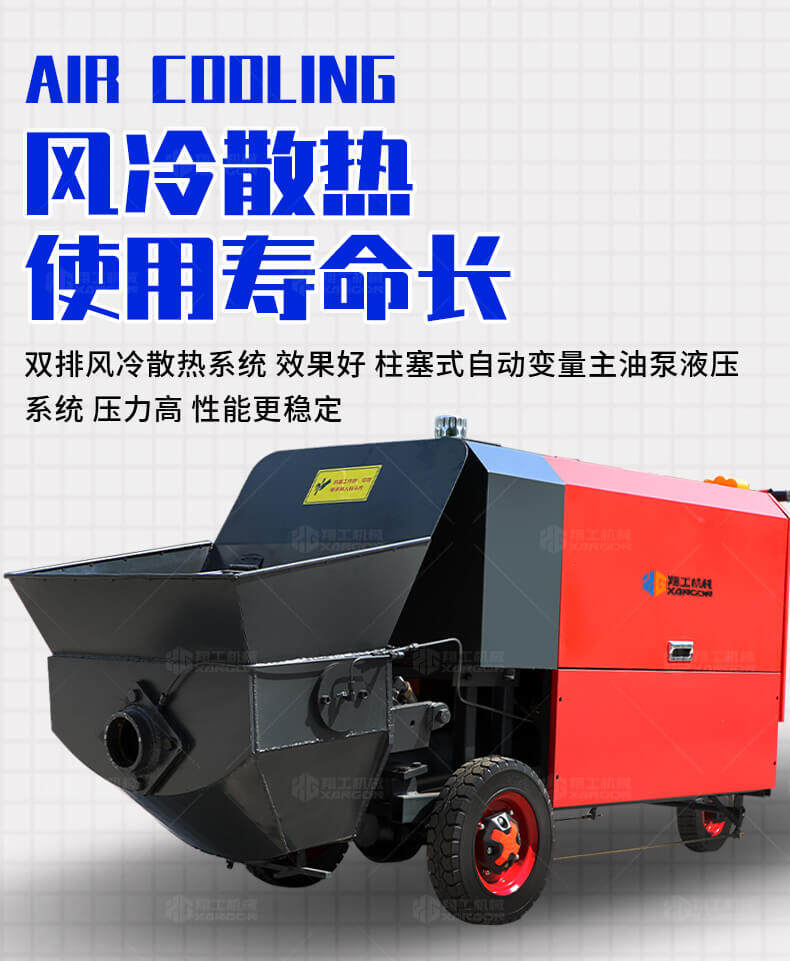 采用獨(dú)創(chuàng)的泵車(chē)尾輪驅(qū)動(dòng)系統(tǒng)輕松解決移動(dòng)時(shí)帶來(lái)的各種困難,采用雙排風(fēng)冷散熱系統(tǒng)散熱效果更好,液壓系統(tǒng)采用壓力更高,性能更穩(wěn)定的柱塞式自動(dòng)變量主油泵,采用先進(jìn)的三維立體壓模一體式自動(dòng)攪拌料斗可輸送機(jī)制砂,高標(biāo)號(hào)混凝土,有效緩解積料問(wèn)題。