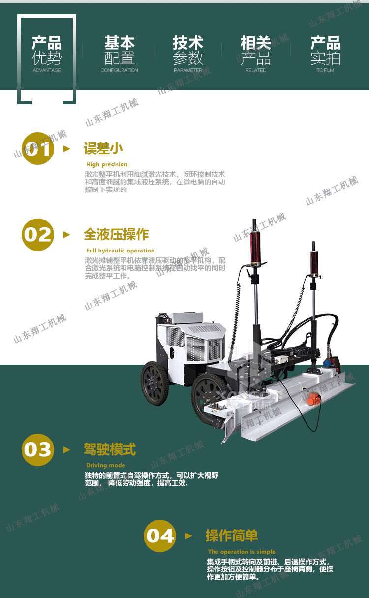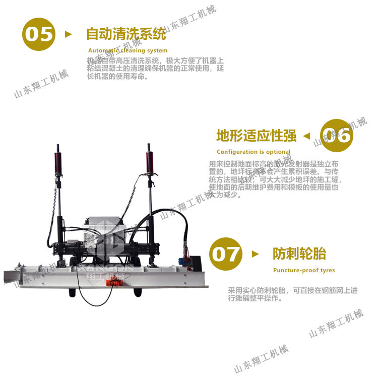 翔工機(jī)械精心研制開發(fā)的激光混凝土整平機(jī)利用先進(jìn)的激光發(fā)射接收系統(tǒng)形成的閉環(huán)回路控制整平板尺的工作,精度高,廣泛用于現(xiàn)代工業(yè)廠房、大型購物場(chǎng)所、貨倉及其它大面積混凝土地面施工。