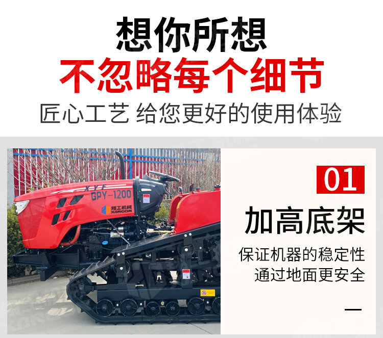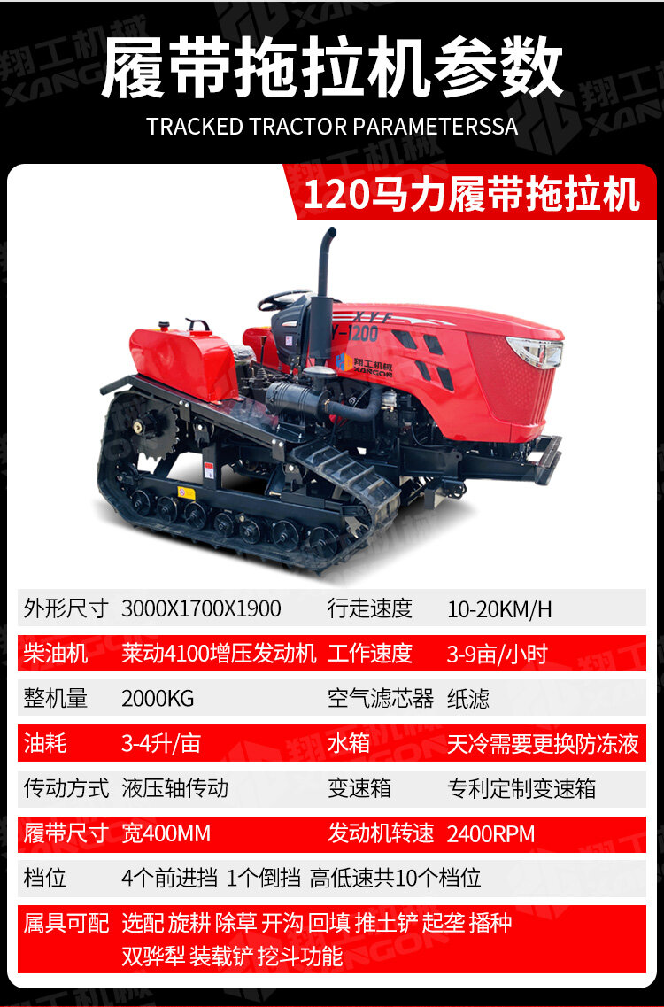 本款120馬力履帶旋耕機(jī),動(dòng)力強(qiáng)勁,作業(yè)高效。采用重型履帶底盤,接地壓力小,通過性與穩(wěn)定性極佳,輕松應(yīng)對(duì)水田、泥濘等復(fù)雜工況。其深耕效果好,碎土率高,能一次性完成旋耕、碎土作業(yè),是規(guī)?;r(nóng)田耕整地的理想選擇。