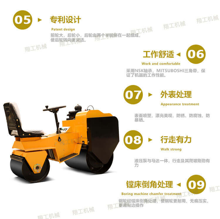 山東翔工XYL-850座駕壓路機(jī)=無(wú)縫鋼輪 進(jìn)口軸承(軸承決定壽命) 原裝進(jìn)口美國(guó)丹弗斯液壓系統(tǒng) 加黃油的黃油孔 常發(fā)6馬力風(fēng)冷柴油機(jī) 無(wú)極變速 2t壓實(shí)力 電磁離合振動(dòng) 單獨(dú)的震動(dòng)按鈕 前進(jìn)后退手柄 可靜碾可震動(dòng) 鋼輪采用鏜床技術(shù)(故障率更低)。