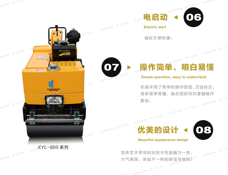 XYL-800C手扶全液壓壓路機(jī)(柴油)主要用于溝渠基礎(chǔ),道路,體育場地的壓實(shí)整平,也可用于壓實(shí)瀝青表面的作業(yè)。