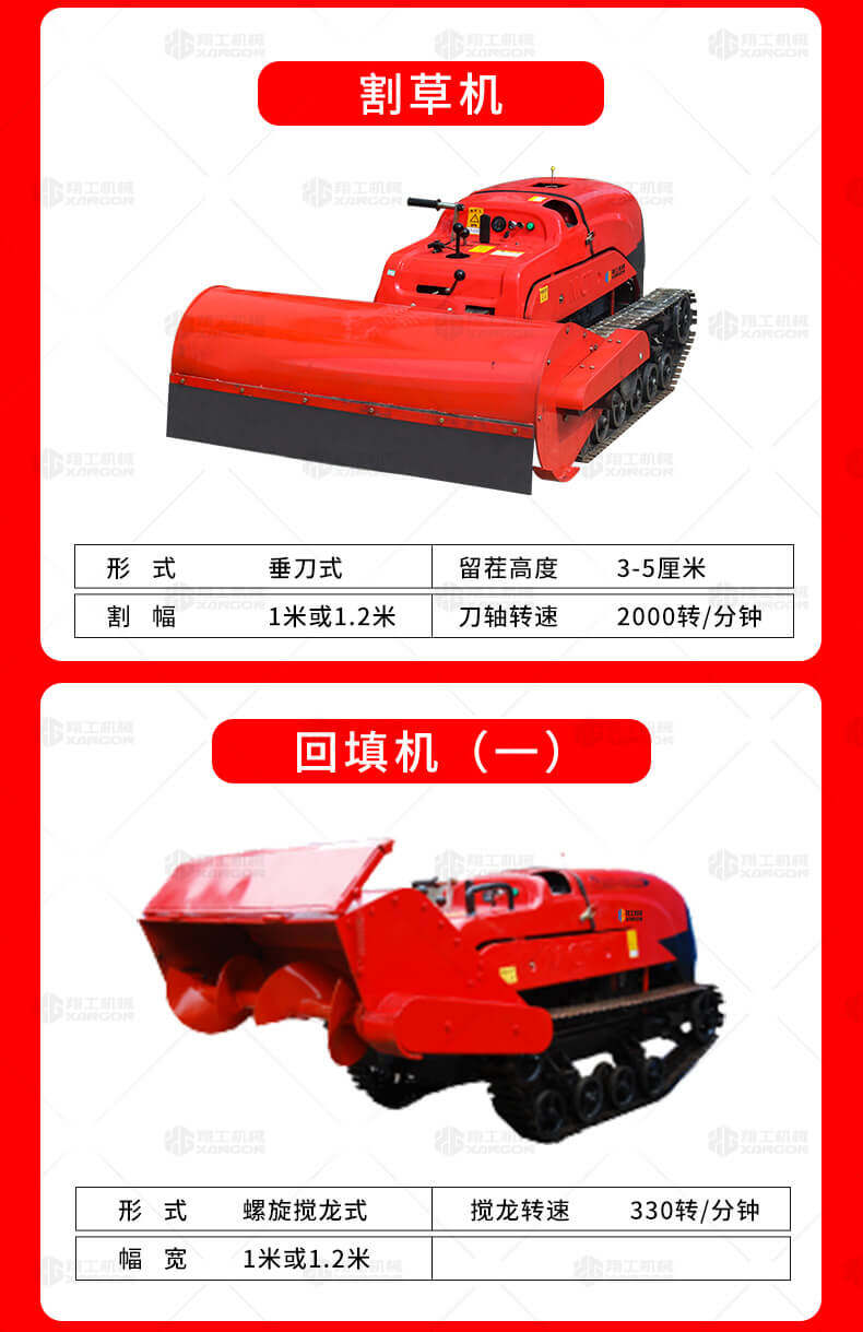 本產(chǎn)品操作方式為遙控操作,車(chē)身超低,可原地轉(zhuǎn)向,是專門(mén)針對(duì)果園開(kāi)發(fā)的新型產(chǎn)品。主機(jī)可配裝多種機(jī)具,可旋耕,除草,開(kāi)溝,割草,施肥等,適用于各種果園樹(shù)下的田間管理。省力效率高,節(jié)省勞力減輕勞動(dòng)強(qiáng)度。