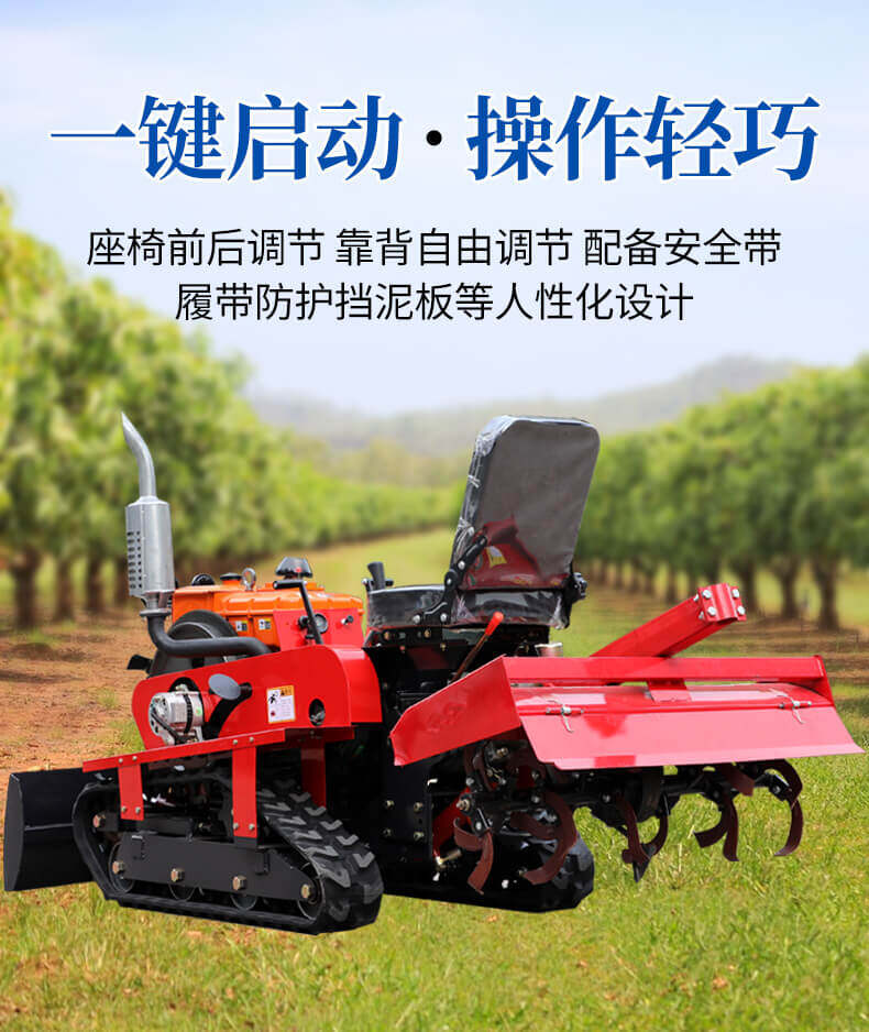 25馬力旱地履帶旋耕機(jī)適用于大面積、小面積清除雜草,適用于果園、農(nóng)田、玉米地、山地的除草作業(yè),打藥/旋耕/犁地/開溝施肥/回填/除草/起壟都可以。