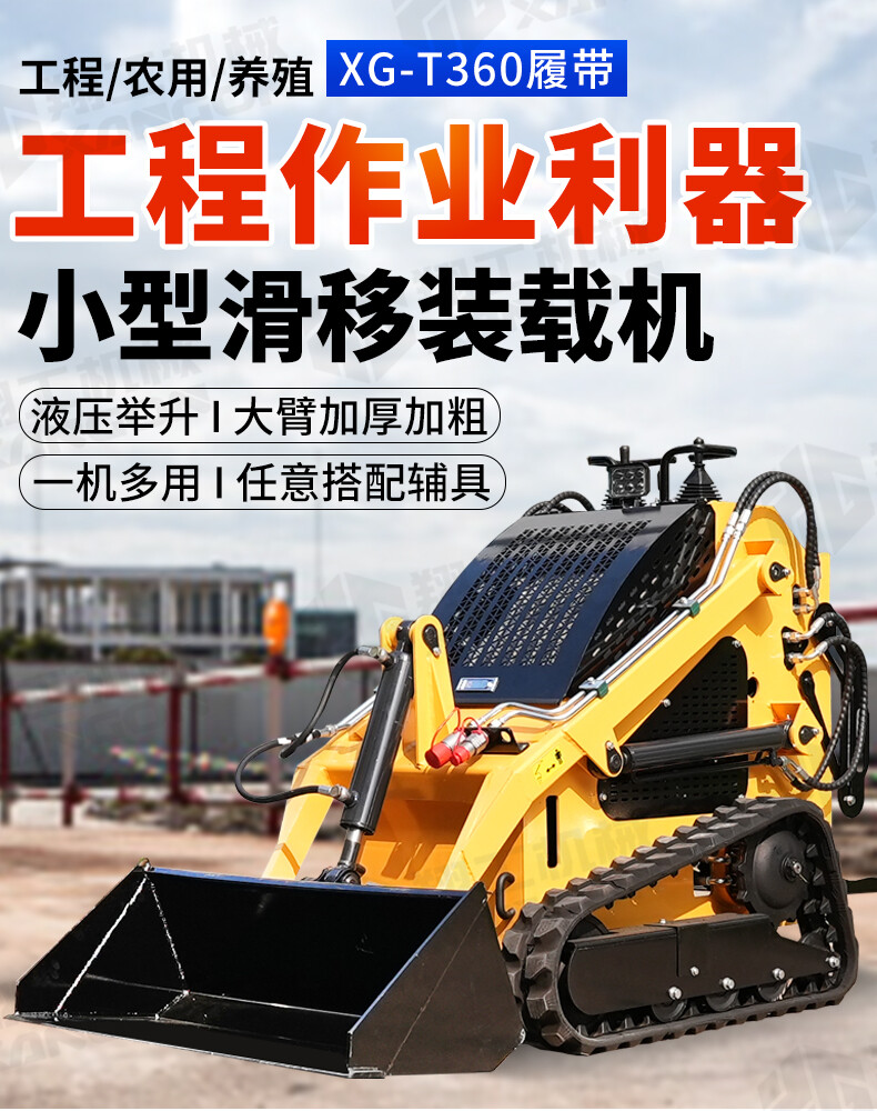 滑移裝載機(jī)液壓舉升,可以任意搭配輔具。